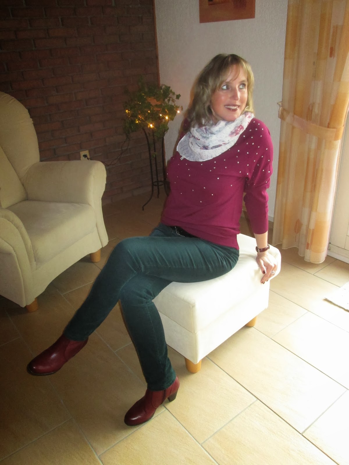 Pullover bonprix – Cordhose Tom Tailor – Tuch Tom Tailor – Stiefeletten Jana