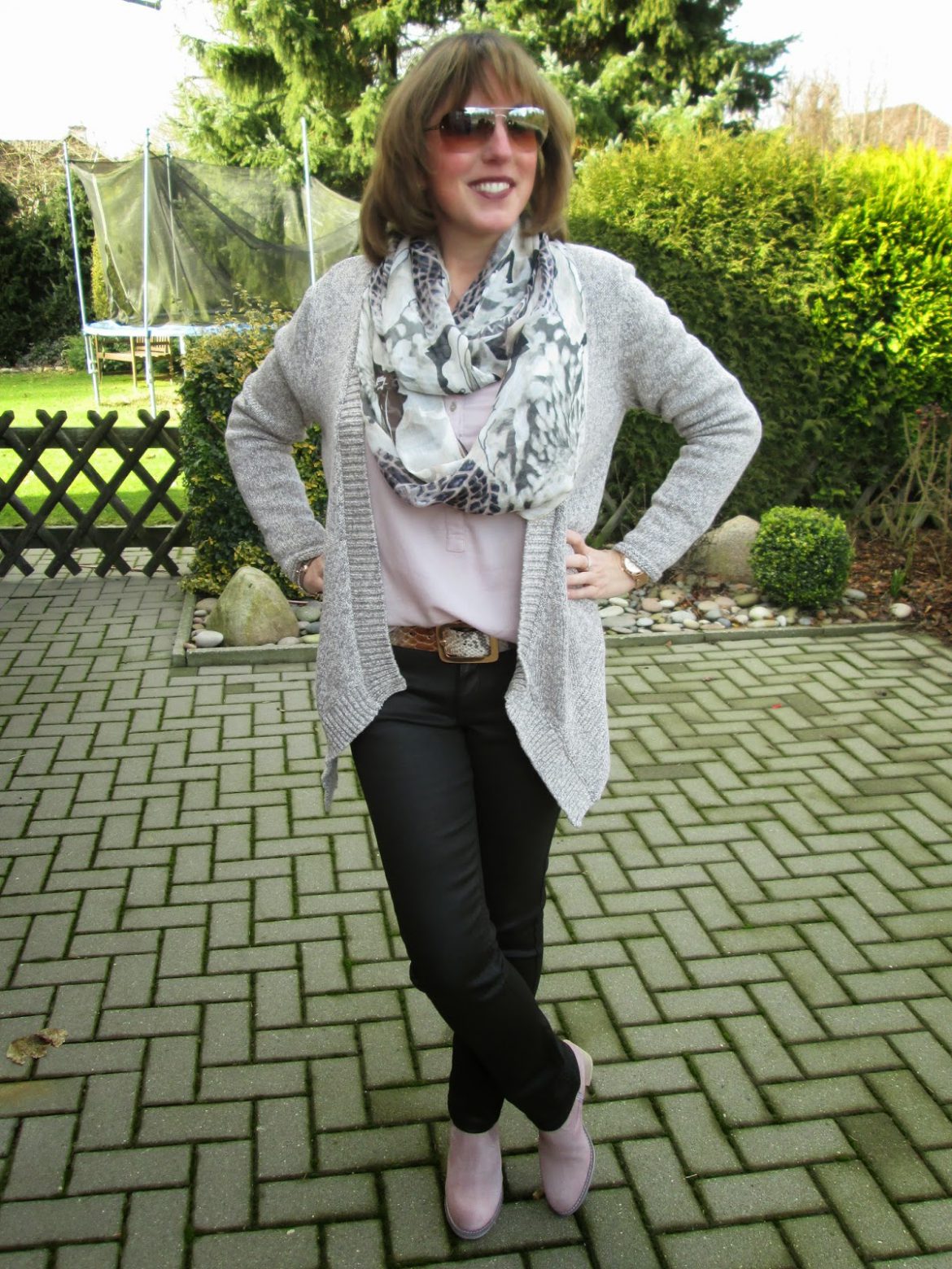 Wie versprochen zeige ich Euch mein gestriges Outfit mit der neuen Lederjacke, Tunikabluse und dem neuen Schal von Tchibo.Ich habe es nicht geschafft, bei den Fotoaufnahmen auch mal ein bisschen ernster auszusehen. Mein Dauergrinsen spiegelt einfach die Freude…