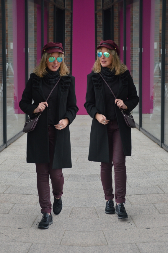 Werbung*…Nach einer kräftigen Farbe ist mir nach wie vor nicht zumute. Dieses Mal kombinierte ich sanfte Farben mit Schwarz. Den rosa Pullover mit den Fransen und die beschichtete Hose in Schwarz stellte ich Euch kürzlich in diesem Post vor:
