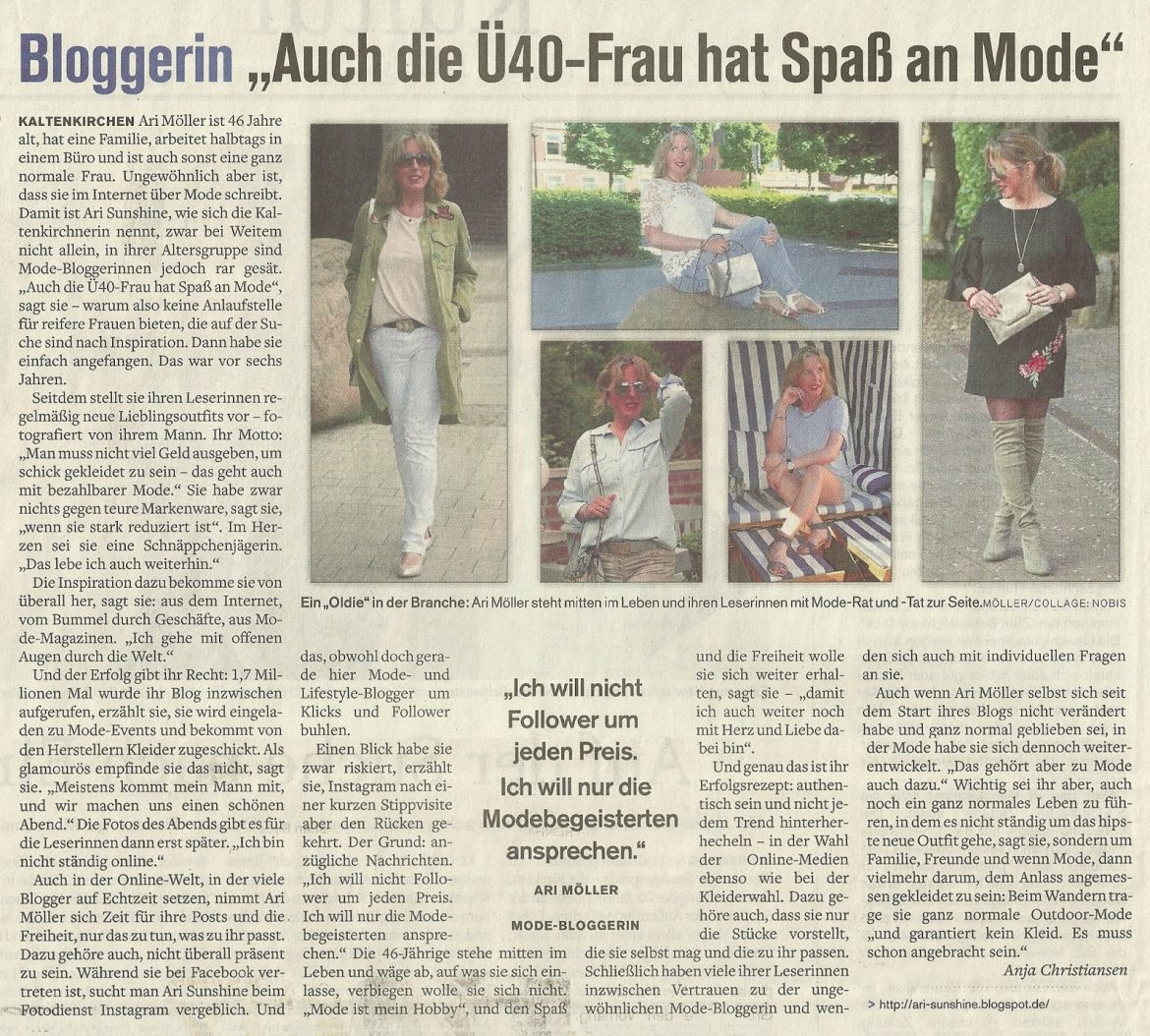 Zum Vergrößern bitte hier klicken. Ggf. muss ein weiterer Klick erfolgen, um die Lupe zu aktivieren. Am 17.06.2017 erschien in 22 Tageszeitungen ein Artikel über meinen Ü40 Modeblog mit dem …