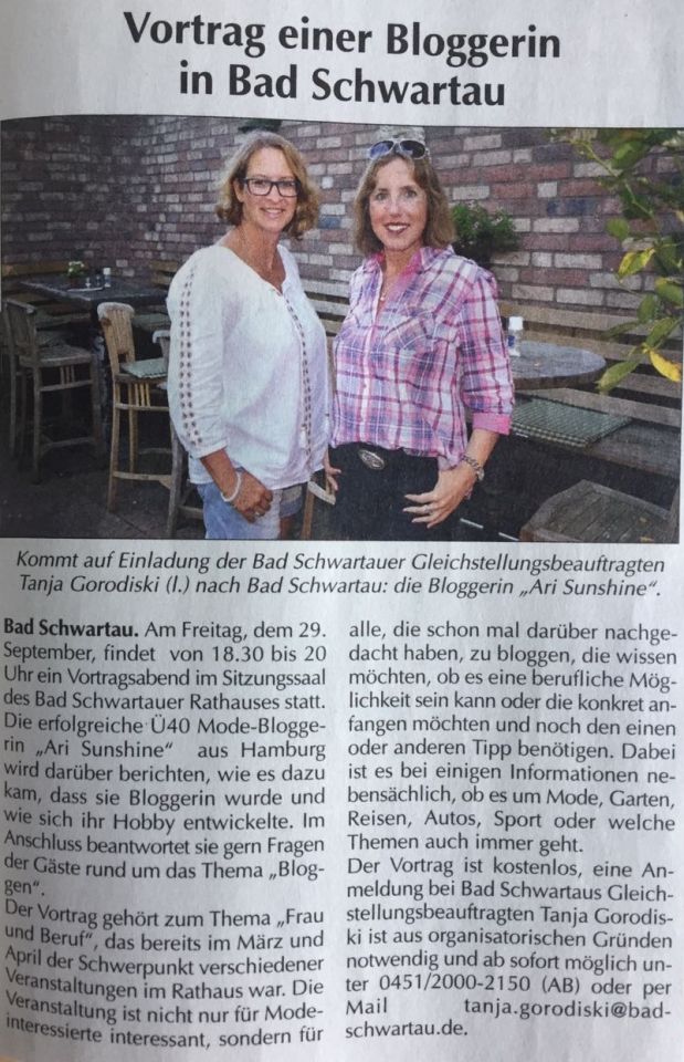 Presse: Vortrag einer Bloggerin in Bad Schwartau & Modebloggerin kommt nach Bad Schwartau