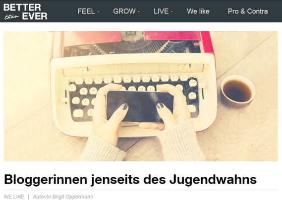 Das Online-Magazin BETTER than EVER aus Wien veröffentlichte kürzlich einen We like Artikel über Bloggerinnen jenseits des Jugendwahns. BETTER than EVER würde sich freuen, wenn ich in meinem Blog auf diesen Artikel …