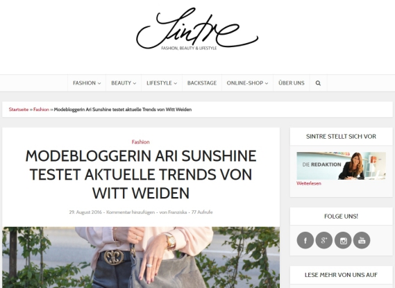 Guten Morgen Ihr Lieben! Kürzlich erschienen über mich zwei Artikel auf Sintre. Die Beiträge möchte ich Euch nicht vorenthalten. Der erste Artikel lautet Modebloggerin Ari Sunshine testet aktuelle Trends von …