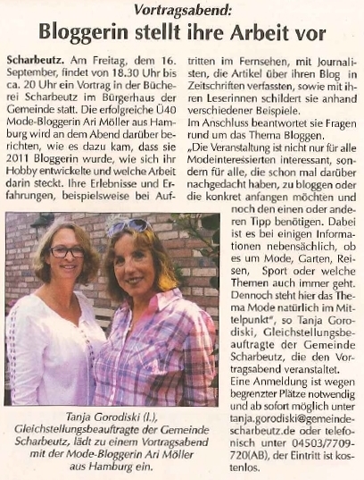 Vor ein paar Monaten nahm Tanja Gorodiski, Gleichstellungsbeauftragte der Gemeinde Scharbeutz, mit mir Kontakt auf. Sie organisiert u.a. Veranstaltungen und Vorträge zu den unterschiedlichsten Themen. Tanja Gorodiski plante zu der …